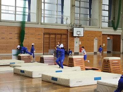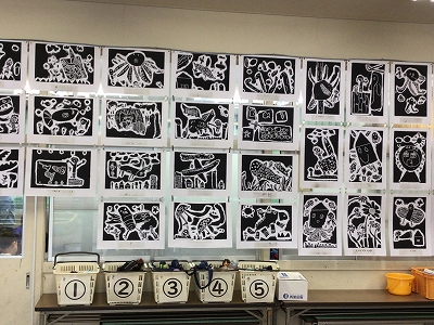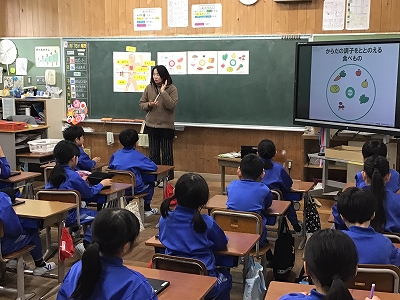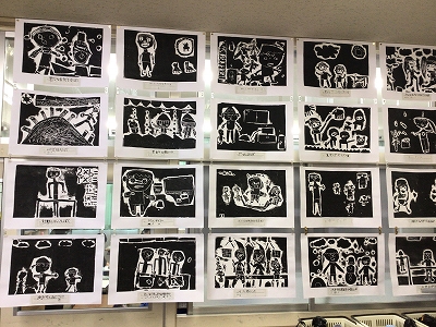 低学年の版画、5年生の跳び箱運動、2年生の食育授業の様子です。