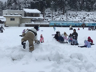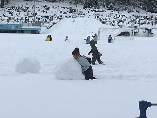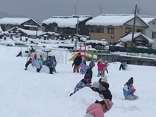 低学年 雪遊び 26 1月,2026 惜陰小学校編集者 1・2年生が校庭で雪遊びをしました。大人にとってはうれしくないことが多い雪ですが、雪で遊べることは雪国のよい点です。おうちの方のご準備、ありがとうございました。