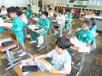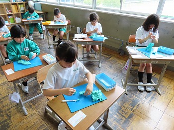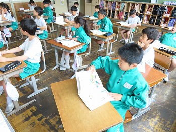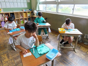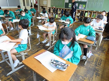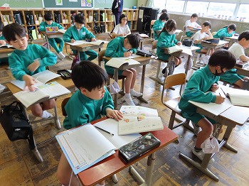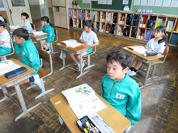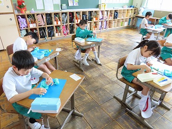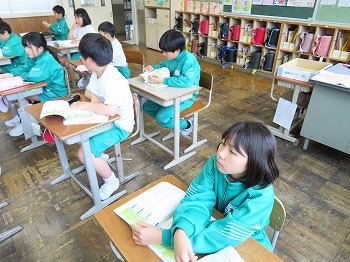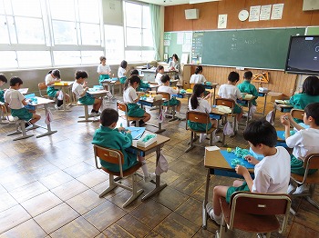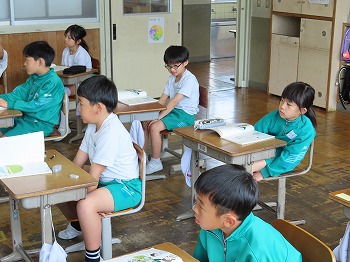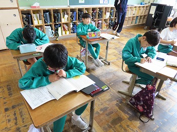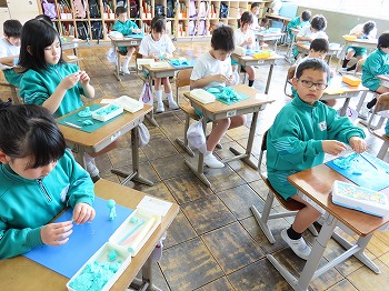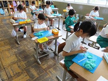 今日の授業風景です。4年生は、国語でそれぞれの学級で題名や主人公について考えていました。3年1組は、国語で日記の書き方について学習して、自分で書き始めていました。3年2組は、図工で粘土作品を制作していました。