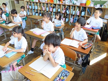 1・2年生 4/24②授業風景 24 4月,2026 進徳小学校 今日の授業風景です。1年生は、担任が入れ替わって道徳をしていました。2年生は、算数で足し算(17+3)の仕方を考えていました。 1年1組 道徳! 1年2組 道徳! 2年1組 算数!