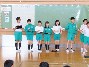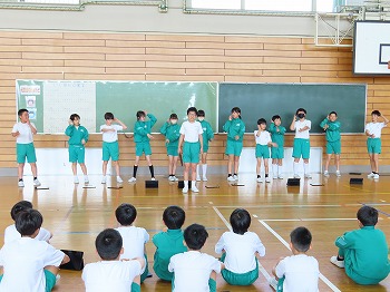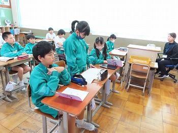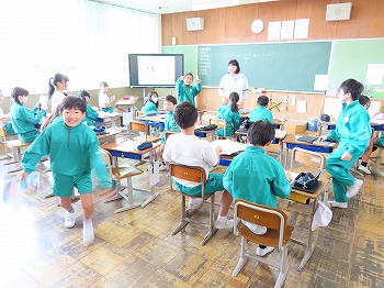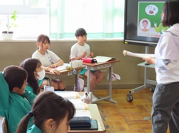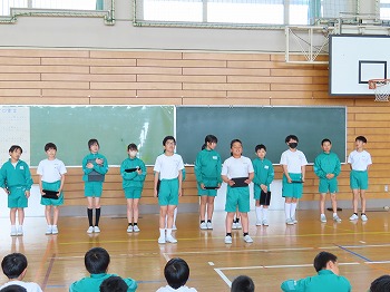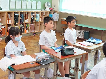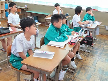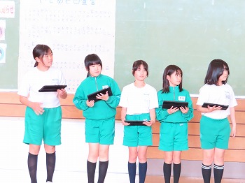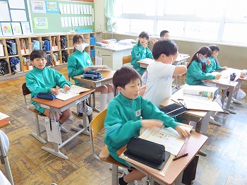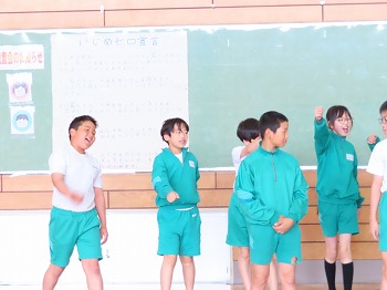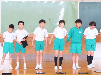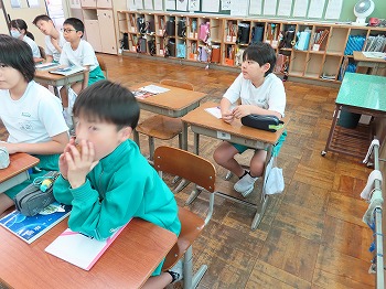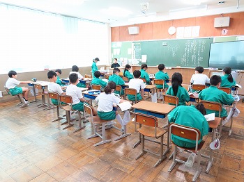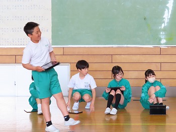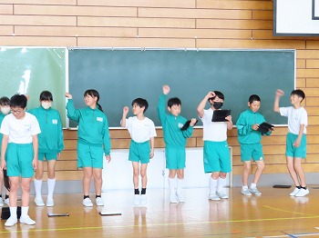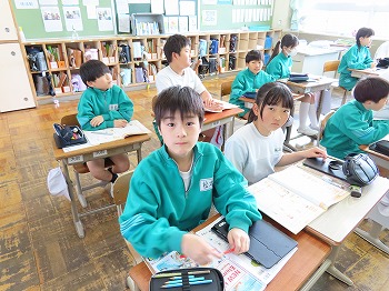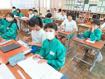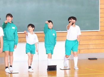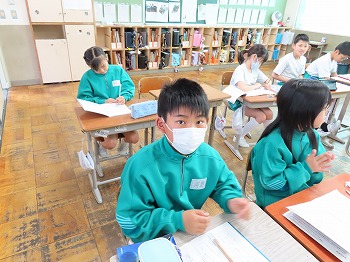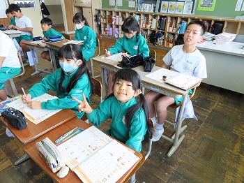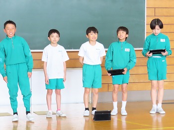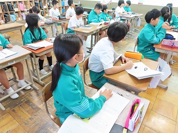 今日の授業風景です。5年2組は、英語でデジタル教科書に合わせて発音したり、リスニング問題に取り組んだりしていました。5年1組は、国語で振り返りを発表していました。くり返しくり返し振り返って、自分の考えをどんどん深めていきましょう!6年生は、応援合戦の練習をしていました。とっても期待してますので、この調子で元気に応援してくださいね!