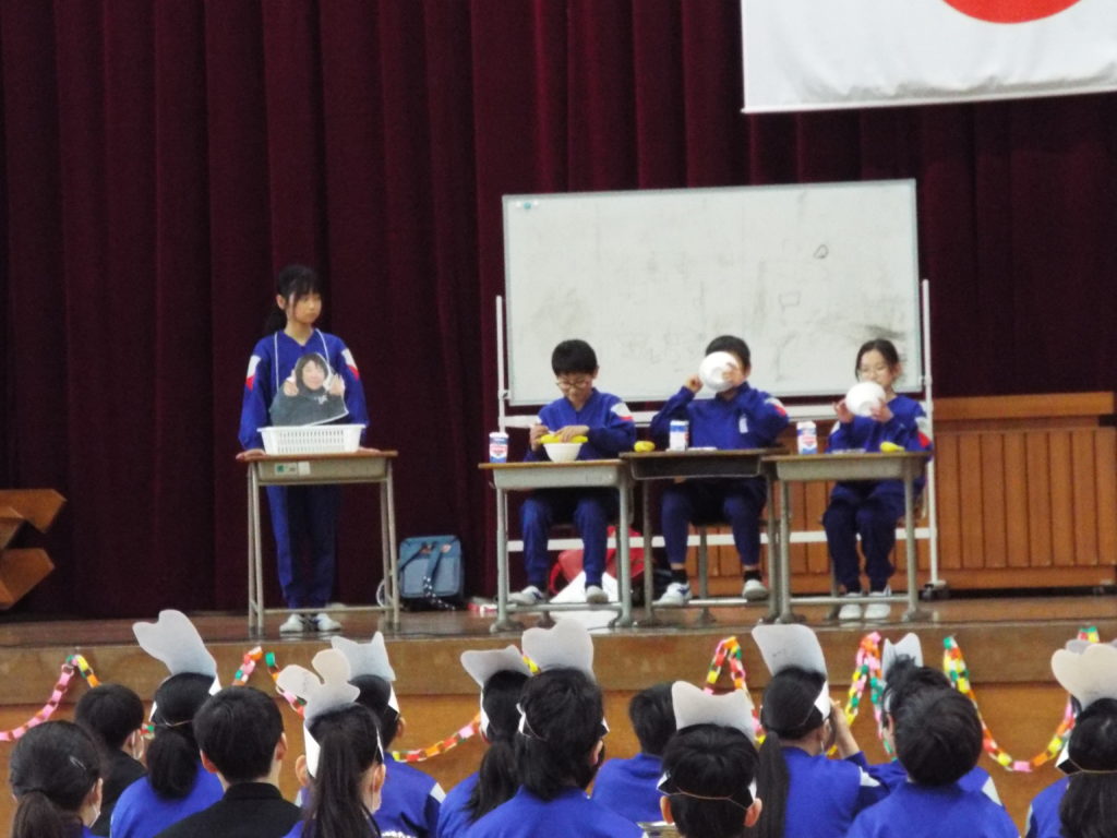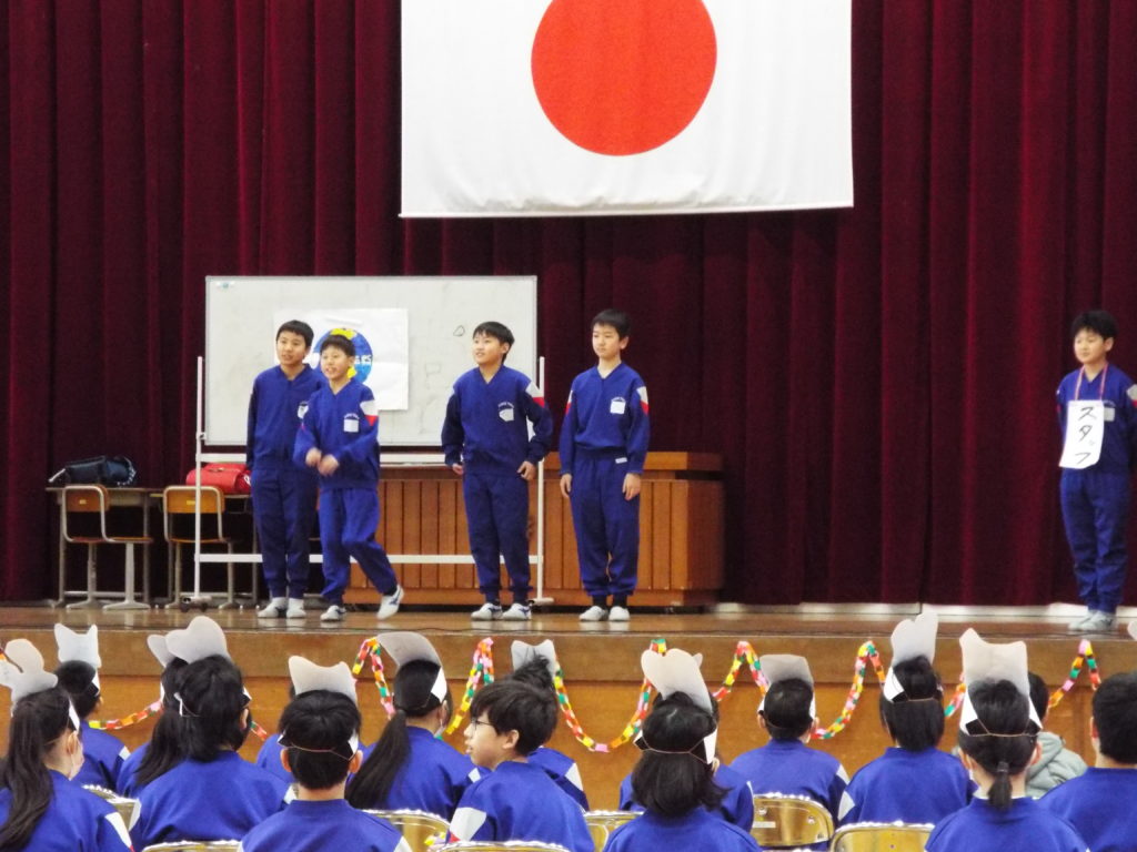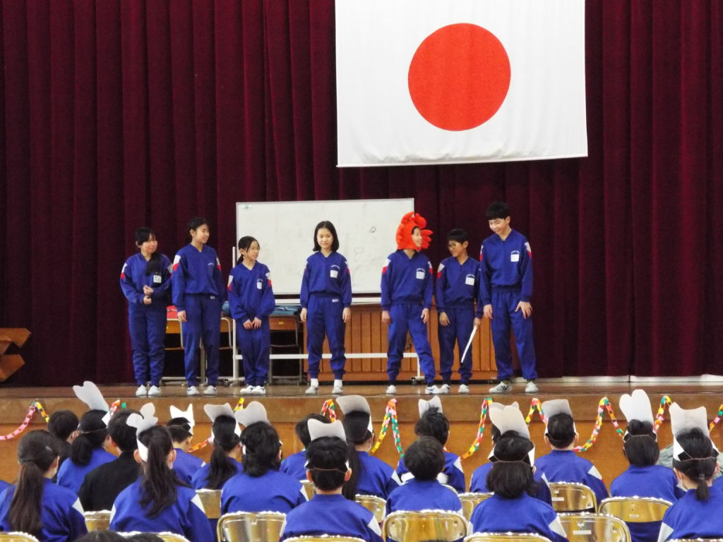 5年生は司会進行やあいさつを担い、学年の歌や全校クイズ、寸劇などを企画して会を盛り上げました。