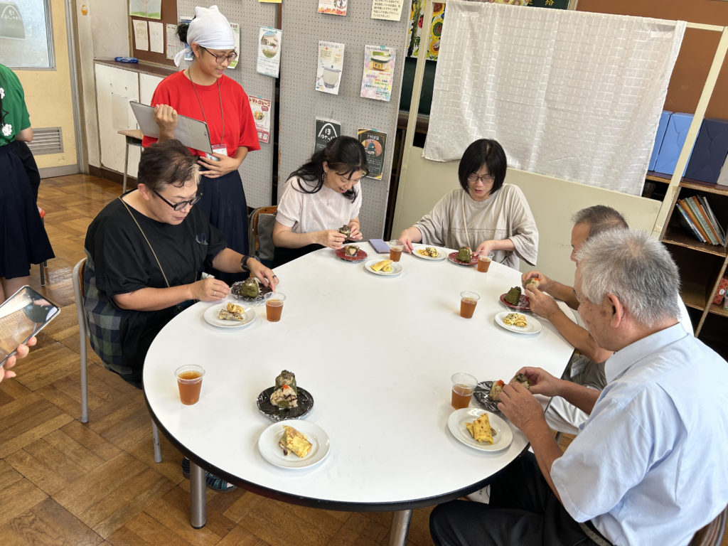 メニューは、ナスみそおにぎり、山うにおにぎり、米粉クレープ ブルーベリージャム添えとトマトジャム添えの4品です。