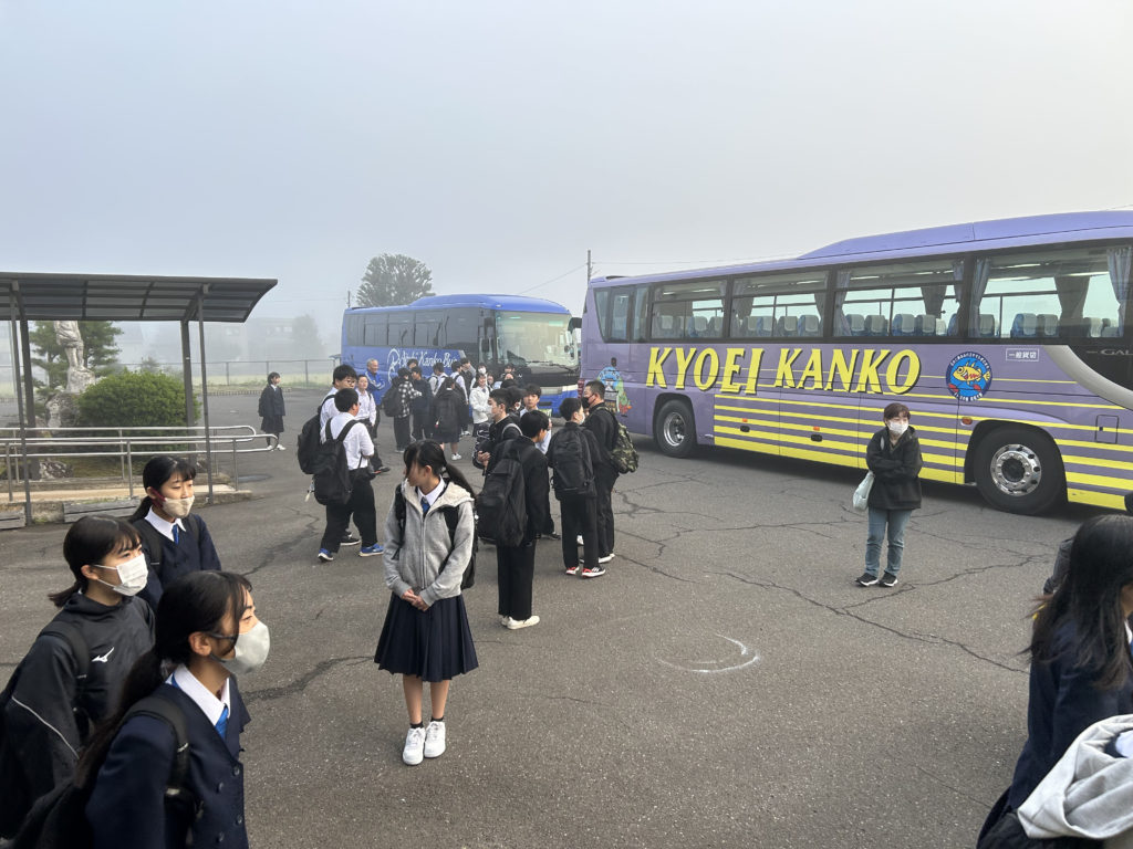 出発前の2年生の様子です。滋賀県まで出かけるので朝早く集合・出発となりました。