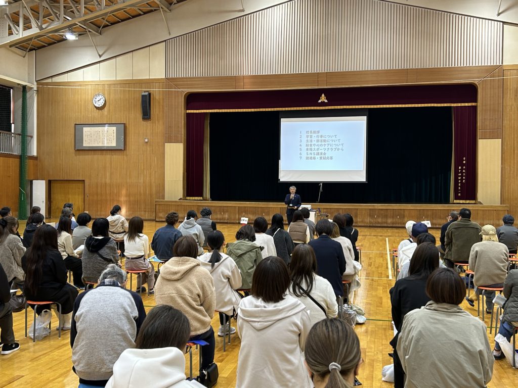 入学説明会では、校長挨拶のあと、学校生活についてそれぞれの担当者から説明がありました。また、東陽スポーツクラブから3名と市教委の担当者2名にも来ていただき、部活動の地域展開について説明をしていただきました。