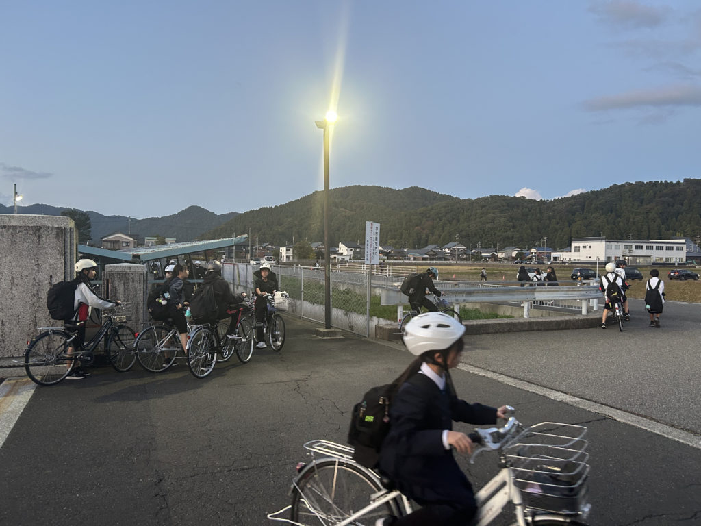 11/6 下校風景 18 11月,2025 toyo 久しぶりの部活動が終了し、17:00頃下校する様子です。すっかり暗くなってきました。通学路を守り、交通事故に遭わないよう、またクマにも気をつけて下校しましょう。