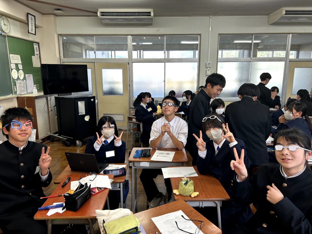 1年生がめがねフレームの授業を受けました。これは市の中学1年生対象の産業教育支援事業「めがねフレームデザインコンテスト」の一環で、中学生に眼鏡産業に興味・関心をもたせるとともに、生徒が自分の将来について考える機会にすることで、主体性のある進路選択につなげることを目的としています。