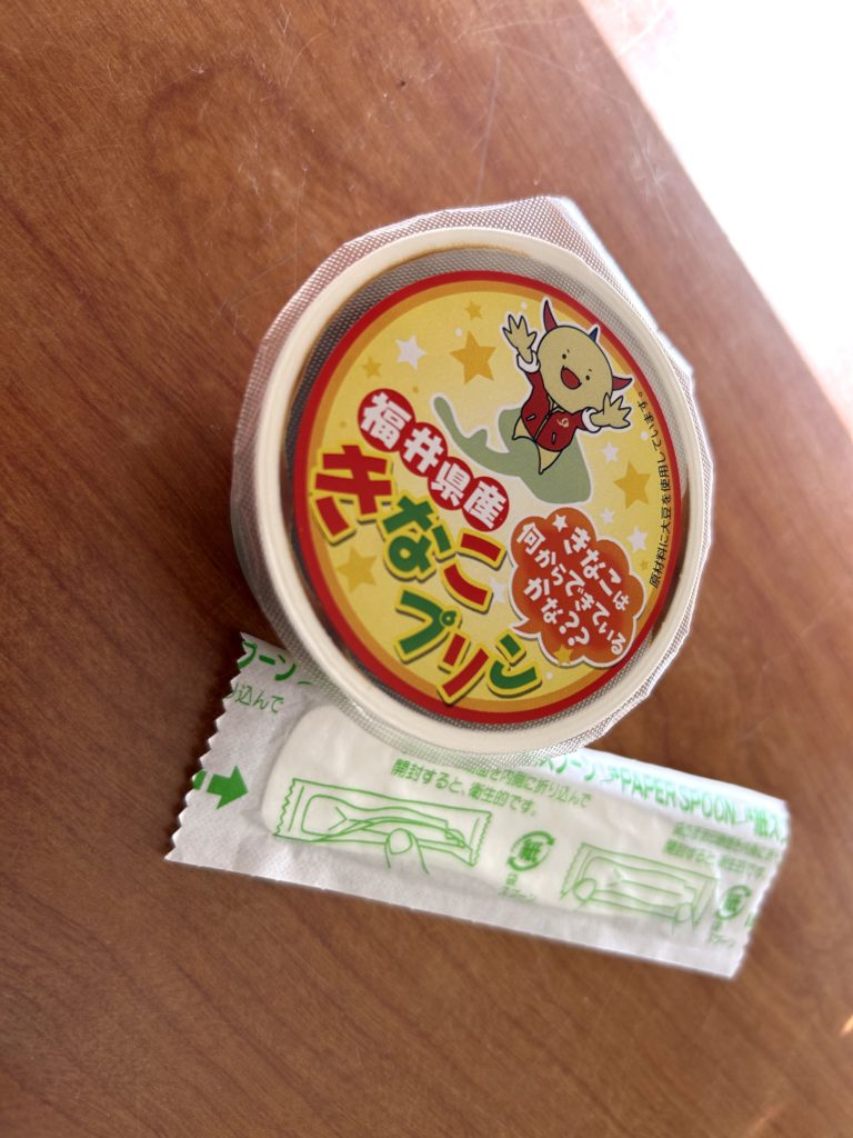 年内最後の給食はプラスワン献立の給食でした。今回は県産きなこプリンがついていました。とろりとした黒蜜がかかっていて、とてもおいしかったです。